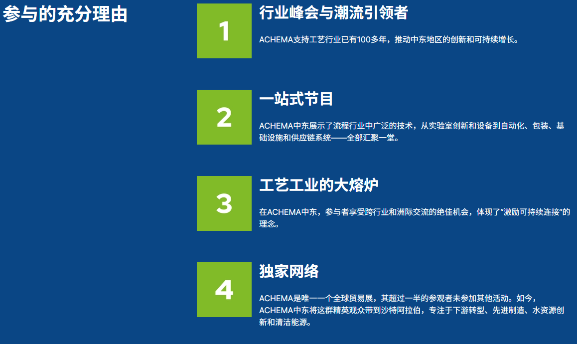 在DECHEMA、法兰克福展览会和工业与矿产资源部的支持下,ACHEMA中东是该地区首个三年一度的盛会。